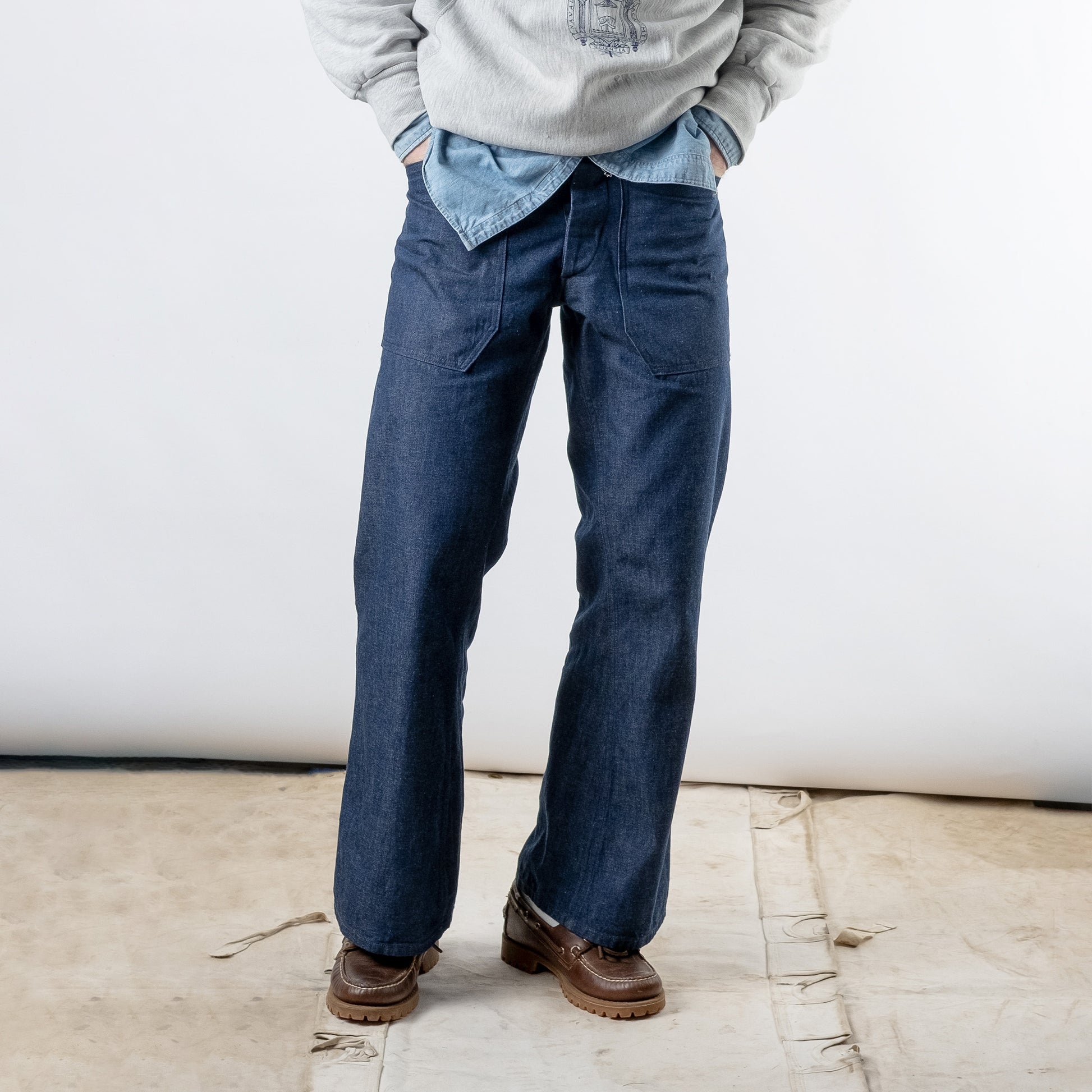 A true 60s naval bell bottoms cut, crafted from a beautiful raw 100% cotton 9.5oz Japanese denim.