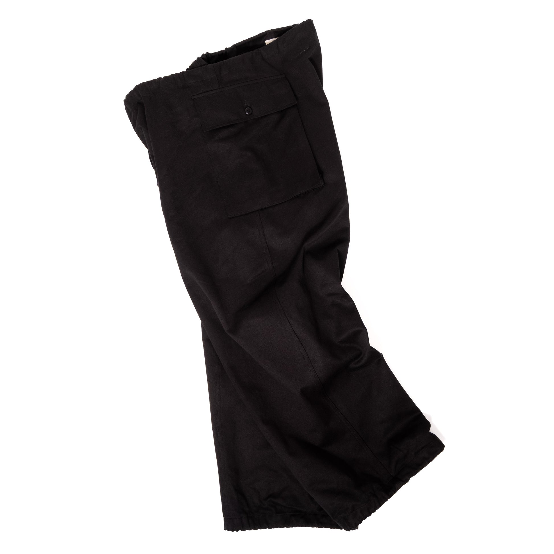 A couple of years ago, I picked up a pair of Vietnam-era USGI vesicant gas protective trousers that were made to be worn over fatigues, hence the stupendous amounts of surplus cloth (see pictured images of the originals in the listing). The beauty is in their simplicity, no fly, no pockets, or belt loops, just purely worn for protection as its function. They looked amazing but lacked any real wearability. After taking a pattern and sourcing some great fabric, I fixed my favourite, and arguably the greatest military pockets at the hips, and here we have my version of the originals. Still with all its wonderful simplicity intact, but with plenty more functionality for the modern wardrobe.